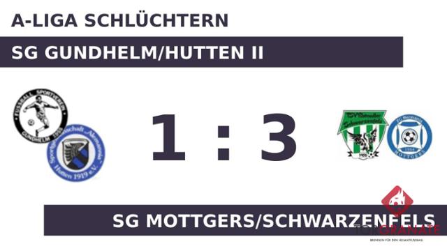 Sascha Hölzer stellte die Weichen für die SG Mottgers/Schwarzenfels auf Sieg, als er in Minute 36 mit dem 1:0 zur Stelle war. Mottgers/Schwarzenf. nahm die knappe Führung mit in die Kabine. Das 2:0 für die SG Mottgers/Schwarzenfels stellte Hölzer sicher. In der 51. Minute traf er zum zweiten Mal während der Partie. Fabian Schlemmer beförderte das Leder zum 1:2 von Gundhelm/Hutten II in die Maschen (75.). Die Heimmannschaft nahm den nominellen Verteidiger Nils Heger raus. Für ihn kam der etatmäßige Mittelfeldmann Dany Spahn, um das Spiel nach vorn zu bringen (78.). Tristan Zeller verwandelte in der 90. Minute einen Elfmeter und baute den Vorsprung von Mottgers/Schwarzenf. auf 3:1 aus. Die 1:3-Heimniederlage der SG Gundhelm/Hutten II war Realität, als Referee Alexander Stiel (Fulda) die Partie letztendlich abpfiff.