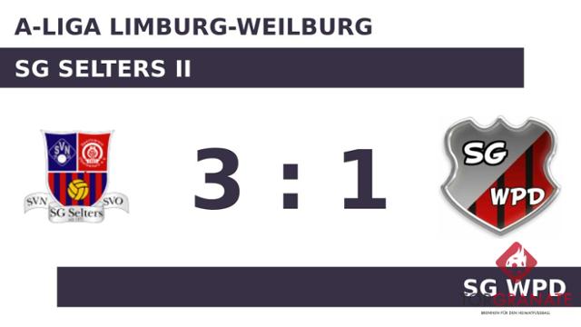 Nicolas Keim brachte den Ball zum 1:0 zugunsten der SG Selters II über die Linie (13.). Henning Simon Gotthardt machte in der 37. Minute das 2:0 des Heimteams perfekt. Mit der Führung für die SG Selters II ging es in die Halbzeitpause. Das 1:2 der SG WPD stellte Adrian Schäfer sicher (72.). Nico Rossel schoss für die SG Selters II in der 77. Minute das dritte Tor. Schlussendlich verbuchte die SG Selters II gegen die SG WPD einen überzeugenden Heimerfolg.