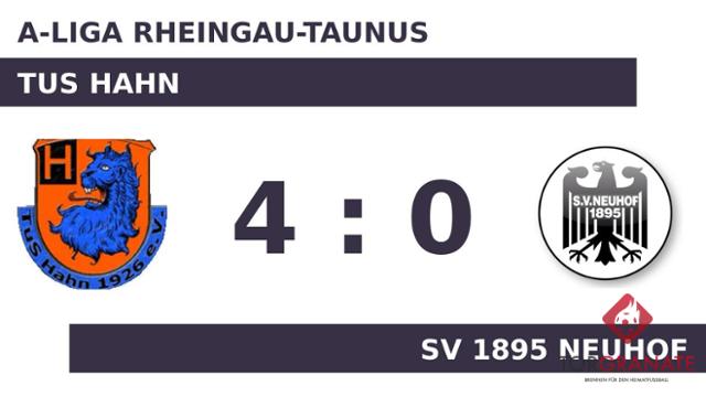 Für das erste Tor sorgte Tizian Girnus. In der 32. Minute traf der Spieler des TuS Hahn ins Schwarze. Zur Pause behielt das Heimteam die Nase knapp vorn. Stjepan Sabljic schoss die Kugel zum 2:0 für den TuS Hahn über die Linie (58.). Wenig später verwandelte Christian Schleihauf einen Elfmeter zum 3:0 zugunsten des TuS Hahn (81.). Erik Michalik gelang in den Schlussminuten noch ein weiterer Treffer für den TuS Hahn (85.). Am Ende kam der TuS Hahn gegen die SV Neuhof zu einem verdienten Sieg.