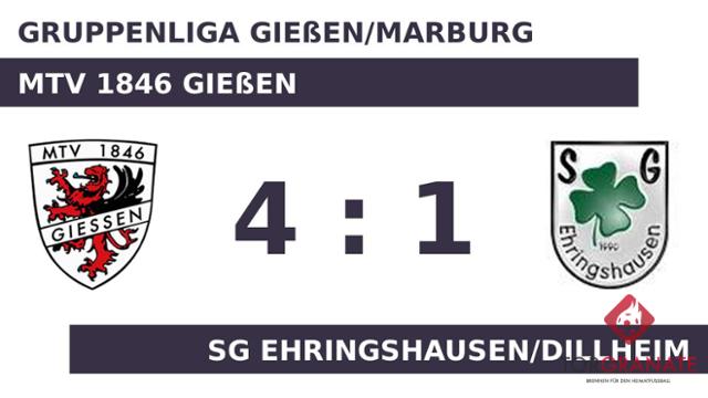 Luca Dreyer schoss in der zwölften Minute vom Elfmeterpunkt das erste Tor des Spiels für den MTV 1846 Gießen. In der 42. Minute verwandelte Muhamet Tokmak einen Elfmeter zum 1:1 für Eringsh./Dillheim. Eine Aussage darüber, wer am Ende die Nase vorn haben würde, war nach dem Abpfiff der ersten Halbzeit noch nicht zu treffen. Es ging mit einem Gleichstand in die Kabinen. Lennart Matheis stellte die Weichen für den MTV Gießen auf Sieg, als er in Minute 55 mit dem 2:1 zur Stelle war. Wenig später kamen Tobias Droß und Julian Liebig per Doppelwechsel für Max Hanold und Tokmak auf Seiten der SG Ehringshausen/Dillheim ins Match (61.). Janick Wagner erhöhte für den MTV 1846 Gießen auf 3:1 (62.). Philipp Müller besorgte in der Schlussphase schließlich den vierten Treffer für die Gastgeber (82.). Schließlich strich der MTV Gießen die Optimalausbeute gegen Eringsh./Dillheim ein.