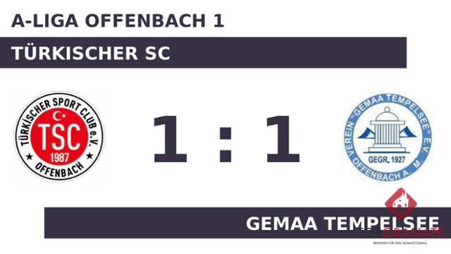Torlos ging es zur Halbzeitpause in die Kabinen. Samet Bayrak brachte dem Gemaa Tempelsee nach 58 Minuten die 1:0-Führung. Der Treffer, der Marvin Fröls in der 90. Minute gelang, bescherte seiner Mannschaft kurz vor dem Ende noch den Ausgleich. Schließlich gingen Türkischer SC und das Gemaa Tempelsee mit einer Punkteteilung auseinander.