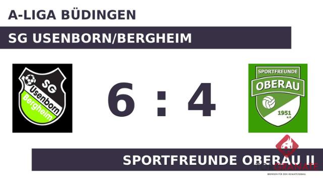 Kurz nach Spielbeginn schockte Nick Juengling die Sportfreunde Oberau II und traf für die SG Usenborn/Bergheim im Doppelpack (1./7.). Daniel Langlitz schraubte das Ergebnis in der elften Minute mit dem 3:0 für die SG Usenborn/Bergheim in die Höhe. Mit dem 4:0 von Juengling für die SG Usenborn/Bergheim war das Spiel eigentlich schon entschieden (30.). Maximilian Fischer schoss die Kugel zum 1:4 für die Sportfr. Oberau II über die Linie (33.). Juengling führte sein Team heute beinahe im Alleingang zum Erfolg: Mit dem 5:1 war er schon das vierte Mal an diesem Tag erfolgreich (43.). Der dominante Vortrag der SG Usenborn/Bergheim im ersten Spielabschnitt zeigte sich an der deutlichen Halbzeitführung. In der 51. Minute brachte Enis Gjoshi das Netz für die Sportfreunde Oberau II zum Zappeln. Juengling überwand den gegnerischen Schlussmann zum 6:2 für die SG Usenborn/Bergheim (56.). Mit schnellen Toren von Xhafer Mustafa (74.) und Fischer (77.) schlugen die Sportfr. Oberau II innerhalb kurzer Zeit gleich doppelt zu. Am Schluss siegte die SG Usenborn/Bergheim gegen die Gäste.