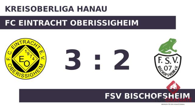 Der Gastgeber ging durch Ricardo Marra in der 20. Minute in Führung. Jean Bosco Makengo nutzte die Chance für den FSV Bischofsheim und beförderte in der 28. Minute das Leder zum 1:1 ins Netz. Zum Seitenwechsel hatte keine Mannschaft die Oberhand gewonnen. Unentschieden lautete der Zwischenstand. Der FSV Bischofsheim ging mit Formationsänderungen in die zweite Halbzeit, da Dominik Sonntag nun für Eldin Fazli weiterspielte. Die nächsten beiden Treffer waren einem Mann vorbehalten: Kevin Schwarzer schnürte einen Doppelpack (75./85.), sodass der FC Eintracht Oberissigheim fortan mit 3:1 führte. Bilal Azzimouni, der von der Bank für Philipp Hess kam, sollte für neue Impulse beim FSV Bischofsheim sorgen (77.). Für das zweite Tor des FSV war Azzimouni verantwortlich, der in der 89. Minute das 2:3 besorgte. Letzten Endes ging das Eintr. Oberissigheim im Duell mit den Bischofsheimer als Sieger hervor.