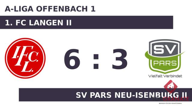 Kaum war das Spiel angepfiffen, lag das Pars Neu-Isenburg II bereits in Front. Enrico Ruehl markierte in der dritten Minute die Führung. Bereits in der 15. Minute erhöhte Elias Tekalegn Tesema den Vorsprung des Gasts. Ben Schwartz schlug doppelt zu und glich damit für den 1. FC Langen II aus (25./30.). Nach nur 30 Minuten verließ Dennis Jonisek vom SV Pars Neu-Isenburg II das Feld, Onur Celik kam in die Partie. Innerhalb weniger Minuten trafen Marlon Gleich (35.) und Schwartz (38.). Damit bewies der 1. FC Langen II nochmals die Durchschlagskraft der Offensive. Mit der Führung für das Heimteam ging es in die Kabine. Zum Seitenwechsel ersetzte Maereg Abate Melesse vom Pars Neu-Isenburg II seinen Teamkameraden Tim Leon. Spielstark zeigte sich der 1. FC Langen II, als Gleich (68.) und Schwartz (74.) innerhalb weniger Minuten für die Vorentscheidung sorgten. In der 87. Minute verwandelte Abate Melesse dann einen Elfmeter für den SV Pars Neu-Isenburg II zum 3:6. Nach abgeklärter Leistung blickte der 1. FC Langen II auf einen klaren Heimerfolg über das Pars Neu-Isenburg II.