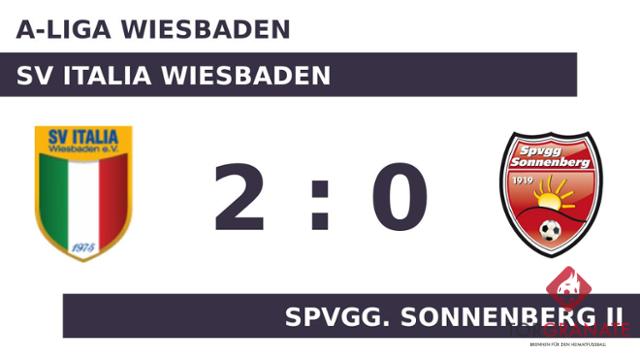 Im ersten Durchgang tasteten sich die beiden Mannschaften lediglich ab, Tore gab es nicht zu verzeichnen. Migell Mensah Alison versenkte die Kugel zum 1:0 (51.). Ehe der Abpfiff ertönte, war es Habib Tolga Can, der das 2:0 aus Sicht des SV Italia Wiesbaden perfekt machte (90.). Am Ende verbuchte der SV Italia Wiesbaden gegen die Spvgg. Sonnenberg II die maximale Punkteausbeute.