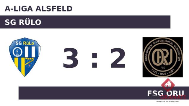 Die FSG ORU erwischte einen Blitzstart ins Spiel. Sebastian Leckel traf in der ersten Minute zur frühen Führung. Die Gäste machten weiter Druck und erhöhten den Spielstand im Eilschritt durch einen Treffer von Moritz Geiß (6.). Das letzte Tor der turbulenten Startphase markierte Marc Bastian in der 20. Minute. Zur Pause hatte die FSG ORU eine hauchdünne Führung inne. Die FSG ORU musste den Treffer von Michael Baumbach zum 2:2 hinnehmen (60.). Der Treffer von Frederik Gross zum Endstand erweckte die Hoffnung, dass die SG RüLo im kommenden Jahr eine Etage höher spielt (77.). Die FSG ORU war bereits auf der Siegerstraße, geriet im Verlauf jedoch ins Straucheln und stand am Ende mit leeren Händen da.