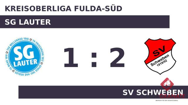 Ab der 31. Minute bereicherte der für Calvin Auth eingewechselte Carsten Stey den SV Schweben im Vorwärtsgang. Ausgerechnet zum psychologisch ungünstigen Zeitpunkt vor der Halbzeit traf Darius Perlak für die SG Lauter zur Führung (44.). Zur Pause war die SGL im Fahrwasser und verbuchte eine knappe Führung. Beim SV Schweben änderte sich die Aufstellung für die zweite Halbzeit. Andreas Stey ersetzte Florian Storch. Marius Müller ließ sich in der 58. Minute nicht zweimal bitten und verwertete zum 1:1 für den SVS. Für das 2:1 der Schwebener zeichnete Christian Birkenbach verantwortlich (64.). Valentin Geier (Homberg (Ohm)) beendete das Spiel und damit schlug der Gast die SG Lauter auswärts mit 2:1.