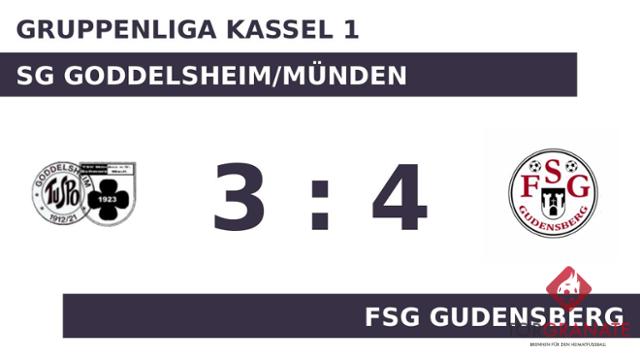 Kaum war das Spiel angepfiffen, lag Goddelsheim/Münden bereits in Front. Florian Mitze markierte in der zweiten Minute die Führung. Die FSG Gudensberg zeigte sich wenig beeindruckt. In der siebten Minute schlug Nick Siebert mit dem Ausgleich zurück. Das letzte Tor der turbulenten Startphase markierte Kevin Vesper in der 19. Minute. Anstelle von Raoul Mitze war nach Wiederbeginn Benjamin Wendel für die SG Goddelsheim/Münden im Spiel. Der Schiedsrichter schickte schließlich beide Mannschaften ohne weitere Änderung am Spielstand in die Kabinen. Mit dem Tor zum 3:1 steuerte Florian Mitze bereits seinen zweiten Treffer an diesem Tag bei (58.). In der 66. Minute stellte die FSG Gudensberg personell um: Per Doppelwechsel kamen Can Rommel und Zinar Dag auf den Platz und ersetzten Marvin Diehl und Talha Gürbüz. Die Gäste hatten das Spiel nicht aufgegeben. Andrej Lang schoss den Anschluss (70.), Christian Dobler Eggers traf zum Ausgleich (75.) und Julian Lauterbach brachte schließlich die Führung (89.). Goddelsheim/Münden hatte alle Trümpfe in der Hand, verspielte im Verlauf jedoch eine komfortable Führung und büßte letztlich eine bittere Niederlage ein.