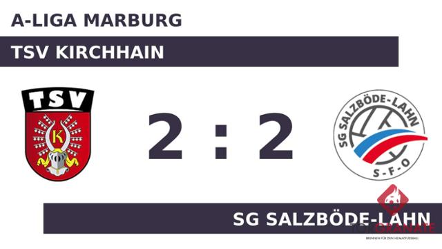 Bastian Gärtner brachte den TSV Kirchhain in der 32. Minute ins Hintertreffen. Mit einem Tor Vorsprung für die SG Salzböde-Lahn ging es für die beiden Teams in die Halbzeitpause. Für das erste Tor des TSV Kirchhain war Jannik Lesch verantwortlich, der in der 62. Minute das 1:1 besorgte. Dass die SG Salzböde-Lahn in der Schlussphase auf den Sieg hoffte, war das Verdienst von Marcel Ngan Ngan, der in der 75. Minute zur Stelle war. Die Gäste bejubelten noch das letzte Erfolgserlebnis, als Michael Roemer für den Ausgleich sorgte (78.). Am Ende stand es zwischen dem TSV Kirchhain und der SG Salzböde-Lahn pari.