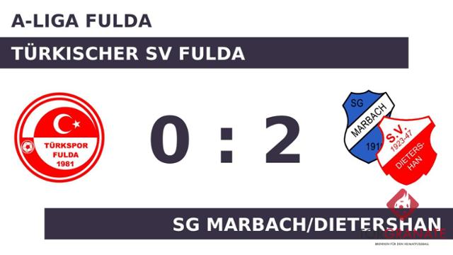Der Türkischer SV Fulda stellte in der 25. Minute personell um: Ibrahim Kücükler ersetzte Cuma Kocpinar und damit ein nomineller Verteidiger den anderen. Marbach/Dietershan ging durch Julian Darnieder in der 29. Minute in Führung. Bis zur Halbzeitpause konnte keine der Mannschaften ihre Torbilanz mehr verbessern. In der 48. Minute brachte Michael Kircher das Netz für die SG Marbach/Dietershan zum Zappeln. Nach Beendigung der zweiten Halbzeit hieß das Ergebnis 2:0 zugunsten der Spielgemeinschaft.