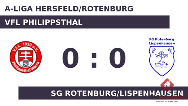 Im ersten Durchgang tasteten sich die beiden Mannschaften lediglich ab, Tore gab es nicht zu verzeichnen. In der 63. Minute stellte die SG Rotenburg/Lispenhausen personell um: Per Doppelwechsel kamen Tom Hassenpflug und Paul Kramer auf den Platz und ersetzten Ayikoe Edem Josue Atayi und Steffen Kanngießer. Dass die Partie keinen Sieger finden würde, war besiegelte Sache, als Referee Holger Muschik (Hünfeld) die Begegnung beim Stand von 0:0 schließlich abpfiff.