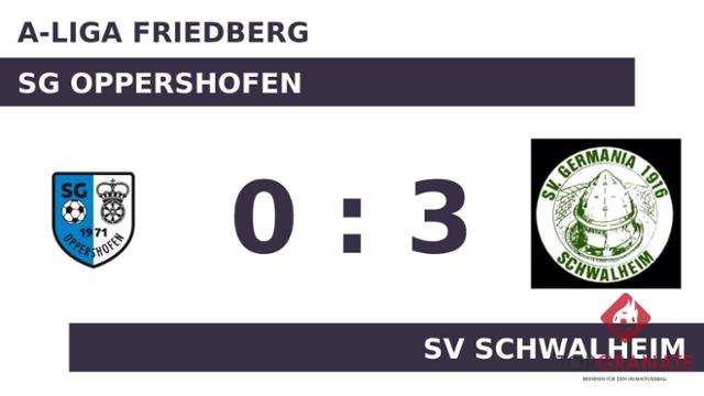 Kupilayhan Yasaroglu brachte den Gästen nach 34 Minuten die 1:0-Führung. Kurz vor dem Pausenpfiff erhöhte Maximilian Freundl den Vorsprung des SV Schwalheim auf 2:0 (40.). Es waren die Gäste, die zur Pause eine Führung ihr Eigen nannten. Christian Scheel baute den Vorsprung des SV Schwalheim in der 63. Minute aus. Am Ende kassierte die SG Oppershofen im Kellerduell mit dem SV Schwalheim eine klare Niederlage.