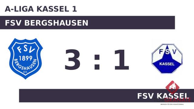 Kaum war das Spiel angepfiffen, lag der FSV Kassel bereits in Front. Felix Straatmann markierte in der vierten Minute die Führung. Wer glaubte, die FSV Bergshausen sei geschockt, irrte. Daniel Greger machte unmittelbar nach dem Rückschlag den Ausgleich perfekt (10.). Kevin Oberhauser verwandelte in der 21. Minute einen Elfmeter und brachte dem Gastgeber die 2:1-Führung. Nach nur 30 Minuten verließ Reza Metz vom FSV Kassel das Feld, Maximilian Röske kam in die Partie. Zur Pause war die FSV Bergshausen im Fahrwasser und verbuchte eine knappe Führung. Zum Seitenwechsel ersetzte Nicklas Yannick Krug von der FSV Bergshausen seinen Teamkameraden Oberhauser. Kurz vor Ultimo war noch Krug zur Stelle und zeichnete für das dritte Tor der FSV Bergshausen verantwortlich (81.). Nach Beendigung der zweiten Halbzeit hieß das Ergebnis 3:1 zugunsten der FSV Bergshausen.