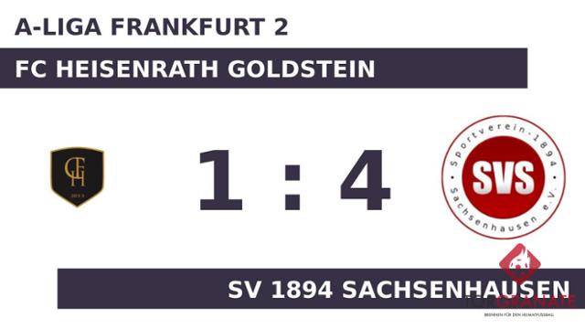Kaum war das Spiel angepfiffen, lag der FC Heisenrath bereits in Front. Javon Steigerwald markierte in der vierten Minute die Führung. Soufiane Azoum musste nach nur 19 Minuten vom Platz, für ihn spielte k. A. weiter. Dominik Schötz nutzte die Chance für den SV 1894 Sachsenhausen und beförderte in der 25. Minute das Leder zum 1:1 ins Netz. Zur Halbzeit war die Partie noch vollkommen offen. Remis lautete das Zwischenresultat. In Durchgang zwei lief Benjamin Marcel Menge anstelle von Maximilian Johannes Walter Gärtner für den SV Sachsenhausen auf. Benjamin Schroedl stellte die Weichen für den SV 1894 Sachsenhausen auf Sieg, als er in Minute 54 mit dem 2:1 zur Stelle war. Per Elfmeter erhöhte Schötz in der 67. Minute seine Torausbeute an diesem Tag auf zwei Treffer – 3:1 für den SV Sachsenhausen. Jerome Schmidt besorgte in der Schlussphase schließlich den vierten Treffer für den SV 1894 Sachsenhausen (78.). Zum Schluss feierte der SV Sachsenhausen einen dreifachen Punktgewinn gegen den FC Heisenrath Goldstein.