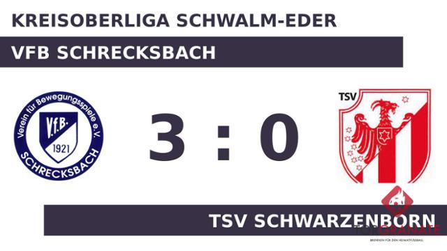 Ein frühes Ende hatte das Spiel für Michael Nickel von den Gästen, der in der siebten Minute vom Platz musste und von Leif Falz ersetzt wurde. Lukas Schwalm brachte den Ball zum 1:0 zugunsten des VfB Schrecksbach über die Linie (39.). Im ersten Durchgang hatten die Gastgeber etwas mehr Zug zum Tor und gingen mit einem knappen Vorsprung in die Kabine. Anstelle von Jerome Kmoch war nach Wiederbeginn Daniel Petersohn für den VfB Schrecksbach im Spiel. Carlo Breves erhöhte den Vorsprung des VfB Schrecksbach nach 51 Minuten auf 2:0. Für ruhige Verhältnisse sorgte Petersohn, als er das 3:0 für den VfB Schrecksbach besorgte (59.). Mit dem Schlusspfiff durch Schiedsrichter Mehmet Ayik (Stadtallendorf) gewann der VfB Schrecksbach gegen den TSV Schwarzenborn.