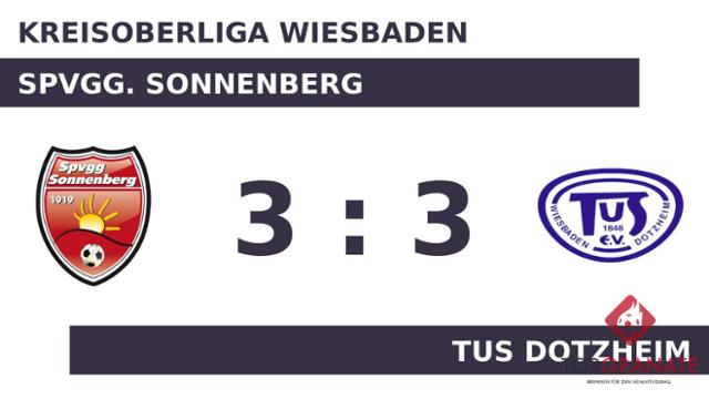 Der TuS Dotzheim erwischte einen Blitzstart ins Spiel. Abdullah Kasilmis traf in der ersten Minute zur frühen Führung. Die Gäste machten weiter Druck und erhöhten den Spielstand im Eilschritt durch einen Treffer von Eray Güngör (9.). Marius Maul ließ sich in der 13. Minute nicht zweimal bitten und verwertete zum 1:2 für die Spvgg. Sonnenberg. In der 37. Minute brachte k.A. k.A. das Netz für den TuS Dotzheim zum Zappeln. Es waren die Gäste, die zur Pause eine Führung ihr Eigen nannten. Mit einem Eigentor kam die Spvgg. Sonnenberg noch einmal ran (74.). In der 82. Minute gelang dem Heimteam, was zur Pause in weiter Ferne war: der Ausgleichstreffer durch Nils Kapral. Der TuS Dotzheim ließ nach dem Wiederanpfiff stark nach und so erkämpfte sich die Spvgg. Sonnenberg noch ein Unentschieden.