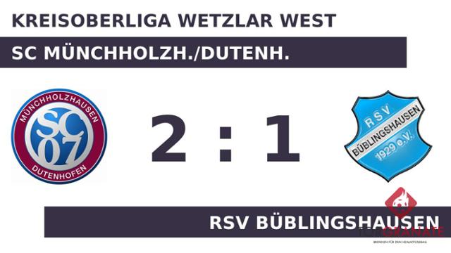 Enis Sefic brachte das Münchholzh./Dutenh. in der 22. Minute nach vorn. In der Zeit bis zur Pause fiel kein weiteres Tor, es blieb bei der Führung für den SC Münchholzh./Dutenh. Sefic schnürte mit seinem zweiten Treffer einen Doppelpack und brachte seine Mannschaft auf die Siegerstraße (60.). Das 1:2 des RSV Büblingshausen bejubelte Osman Demirel (65.). Nach Beendigung der zweiten Halbzeit hieß das Ergebnis 2:1 zugunsten des Münchholzh./Dutenh.