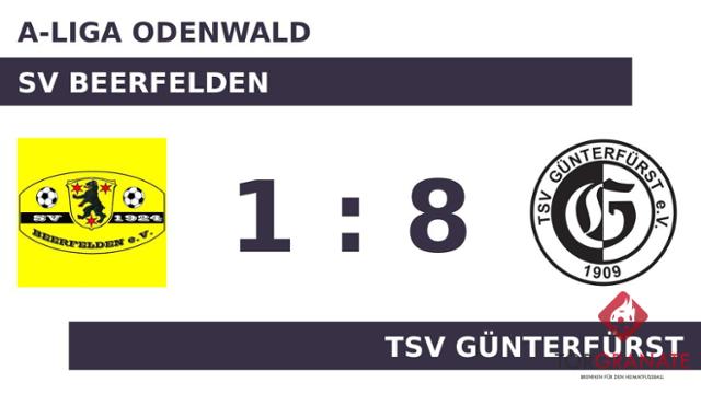 Matthias Hallstein stellte die Weichen für den TSV Günterfürst auf Sieg, als er in Minute 20 mit dem 1:0 zur Stelle war. Andre Moos erhöhte den Vorsprung der Gäste nach 30 Minuten auf 2:0. Mit dem 3:0 von Louis Timocin für den TSV Günterfürst war das Spiel eigentlich schon entschieden (32.). Kurz vor dem Seitenwechsel legte Lukas Köbler das 4:0 nach (45.). Der dominante Vortrag des TSV Günterfürst im ersten Spielabschnitt zeigte sich an der deutlichen Halbzeitführung. Der fünfte Streich des TSV Günterfürst war Kim Naas vorbehalten (55.). Vom Elfmeterpunkt erzielte Marco Rexroth den Ehrentreffer für den SV Beerfelden (60.). Gleich drei Wechsel nahm der TSV Günterfürst in der 64. Minute vor. Köbler, Naas und Hallstein verließen das Feld für Max Hoerschelmann, Robin Mueller und Alexander Emig. Der TSV Günterfürst baute die Führung aus, indem Timocin zwei Treffer nachlegte (77./80.). Mueller stellte schließlich in der 86. Minute den 8:1-Sieg für den TSV Günterfürst sicher. Am Ende fuhr der TSV Günterfürst einen deutlichen Sieg ein. Dabei demonstrierte der TSV Günterfürst bereits in Hälfte eins großes Leistungsvermögen, als man den SV Beerfelden in Grund und Boden spielte.