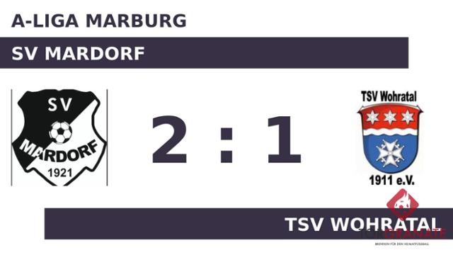 Paul Kobienia brachte den SV Mardorf in der 23. Minute in Front. Bis zum Pausenpfiff blieb der Stand unverändert. In der 54. Minute erhöhte Johannes Greb auf 2:0 für den SV Mardorf. Durch einen von Marcel Huehn verwandelten Elfmeter gelang dem TSV Wohratal in der 77. Minute der 1:2-Anschlusstreffer. Letzten Endes holte der SV Mardorf gegen die Gäste drei Zähler.