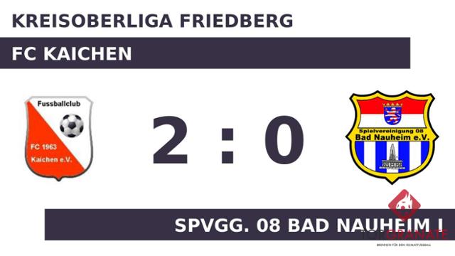 Nach den ersten 45 Minuten ging es für den FC Kaichen und die Spvgg. 08 Bad Nauheim I ohne Torerfolg in die Kabinen. Nach der Pause ging das Spiel ohne Aimane Ajabli weiter, dafür stand nun Kamber Koc bei der Spvgg. Bad Nauheim auf dem Feld. K.A. k.A. stellte die Weichen für den FC Kaichen auf Sieg, als er in Minute 50 mit dem 1:0 zur Stelle war. Der Treffer von Kevin Kurtz in der 71. Minute schürte bei Fans und Spielern die Hoffnung auf den Aufstieg. Wenig später kamen Hamed Azimi und Farzan Hosseini per Doppelwechsel für Fran David Jimenez und Abdelouahed Atmani auf Seiten der Spvgg. 08 Bad Nauheim I ins Match (77.). Nach Beendigung der zweiten Halbzeit hieß das Ergebnis 2:0 zugunsten des FC Kaichen.