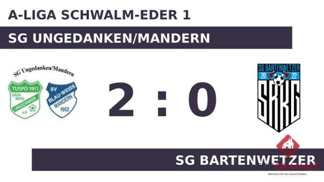 Die Gäste gerieten schon in der achten Minute in Rückstand, als Niklas Koch das schnelle 1:0 für die SG Ungedanken/Mandern erzielte. Zur Pause wusste Ungedanken/Mandern eine hauchdünne Führung auf der Habenseite. Anstelle von Tim Bubenhagen war nach Wiederbeginn Dominik Diederich für die Heimmannschaft im Spiel. Manuel Merten verwandelte in der 89. Minute einen Elfmeter und baute den Vorsprung der SG Ungedanken/Mandern auf 2:0 aus. Letzten Endes holte Ungedanken/Mandern gegen die SG Bartenwetzer drei Zähler.