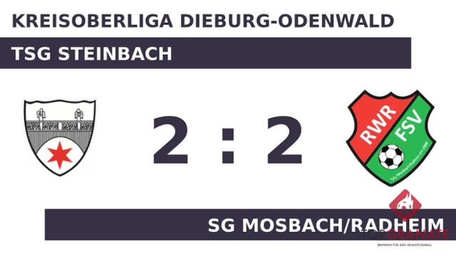 Für den Führungstreffer des Heimteams zeichnete Daniel Reimer verantwortlich (37.). Die TSG Steinbach führte zur Halbzeit knapp mit einem Tor Vorsprung. Die SG Mosbach/Radheim drängte auf den Ausgleich. Für frischen Wind sollten Leon Ruppert und Nick Stefan sorgen, die per Doppelwechsel für Jan Niklas Oberdoerfer und Johannes Schmidt auf das Spielfeld kamen (68.). Ruppert traf zum 1:1 zugunsten der Gäste (72.). Dass die SG Mosbach/Radheim in der Schlussphase auf den Sieg hoffte, war das Verdienst von Elias Jakob, der in der 80. Minute zur Stelle war. Für den Gleichstand, der kurz vor dem Ende zustande kam, zeichnete Benjamin Reimer mit seinem Treffer aus der 90. Minute verantwortlich. Am Schluss hatte im Duell der beiden Mannschaften keine die Oberhand gewonnen und so trennten sich die TSG Steinbach und die SG Mosbach/Radheim schließlich mit einem Remis.