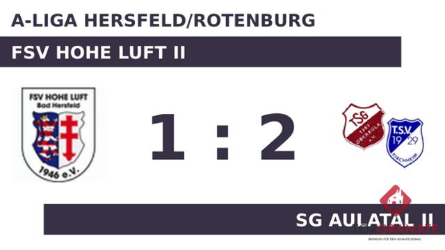 Auf die vermeintliche Siegerstraße brachte Elmir Beciri sein Team in der 22. Minute. Nach nur 23 Minuten verließ Ghergish Ghilay vom FSV Hohe Luft II das Feld, Dervis Hasanovic kam in die Partie. Der Schiedsrichter schickte schließlich beide Mannschaften ohne weitere Änderung am Spielstand in die Kabinen. Sergej Boka war es, der in der 64. Minute den Ball im Gehäuse des FSV Hohe Luft II unterbrachte. Dass die SG Aulatal II in der Schlussphase auf den Sieg hoffte, war das Verdienst von Marlon Pletsch, der in der 78. Minute zur Stelle war. Schließlich strich die SG Aulatal II die Optimalausbeute gegen den FSV Hohe Luft II ein.