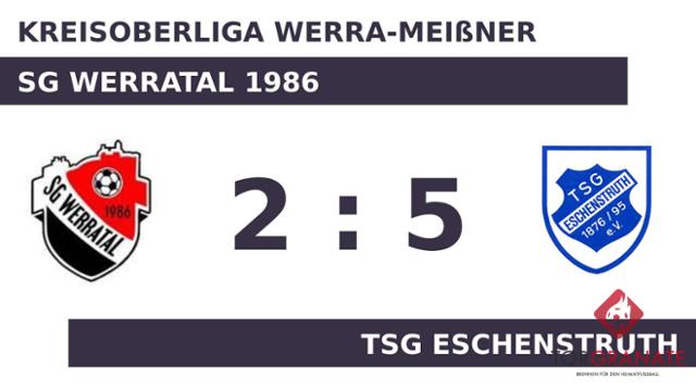 Für das erste Tor sorgte Tim Wundersee. In der 18. Minute traf der Spieler des TSG Eschenstruth ins Schwarze. Janik Szczygiel beförderte das Leder zum 2:0 des TSG Eschenstruth über die Linie (37.). Es waren die Gäste, die zur Pause eine Führung ihr Eigen nannten. Den Vorsprung des TSG Eschenstruth ließ Szczygiel in der 57. Minute anwachsen. Noah Mittermueller legte in der 61. Minute zum 4:0 für den TSG Eschenstruth nach. Pascal Goldmann war es, der in der 63. Minute das Spielgerät im Gehäuse des TSG Eschenstruth unterbrachte. Das 5:1 für den TSG Eschenstruth stellte Mittermueller sicher. In der 72. Minute traf er zum zweiten Mal während der Partie. Kurz vor Ultimo war noch Benedikt Lange zur Stelle und zeichnete für das zweite Tor der SG Werratal 1986 verantwortlich (90.). Am Ende verbuchte der TSG Eschenstruth gegen die Gastgeber einen Sieg.