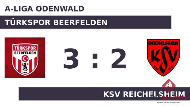 Der KSV Reichelsheim geriet schon in der achten Minute in Rückstand, als Fatih Sevindik das schnelle 1:0 für Türkspor Beerfelden erzielte. Für Enes Uslu war der Einsatz nach 14 Minuten vorbei. Für ihn wurde Emre Kanat eingewechselt. Zur Pause war Türkspor Beerfelden im Fahrwasser und verbuchte eine knappe Führung. In der Halbzeit nahm der KSV Reichelsheim gleich zwei Wechsel vor. Fortan standen Vanja Serdar und Edwin Untereiner für Johannes Arras und Leon Kaffenberger auf dem Platz. Untereiner war zur Stelle und markierte das 1:1 der Gäste (54.). Der Treffer zum 2:1 sicherte Türkspor Beerfelden nicht nur die Führung – es war auch bereits der zweite von Sevindik in diesem Spiel (74.). Untereiner schoss für den KSV Reichelsheim in der 83. Minute das zweite Tor. Kanat stellte für Türkspor Beerfelden im Schlussakt den Führungstreffer sicher (85.). Am Ende behielt Türkspor Beerfelden gegen den KSV Reichelsheim die Oberhand.