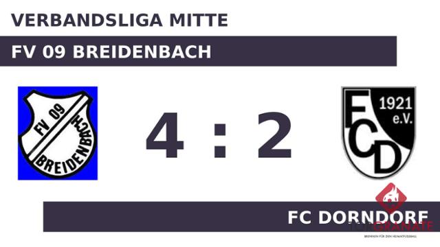 Mit der Führung für den FV 09 Breidenbach ging es in die Kabine. In der Pause stellte der FC Dorndorf personell um: Per Doppelwechsel kamen Daniele Parisi und Leon Blech auf den Platz und ersetzten Franjo Tuzlak und Colin Iwan. Der Unparteiische Sascha Bauer (Fritzlar) beendete schließlich eine Partie, die zwei grundverschiedene Halbzeiten gezeigt hatte. Während es in Durchgang eins hin und her ging und der FV 09 Breidenbach eine Führung für sich reklamierte, verlief die zweite Hälfte torlos. Am Ende feierte der Traditionsverein aus dem Hinterland drei Punkte für das Klassement.