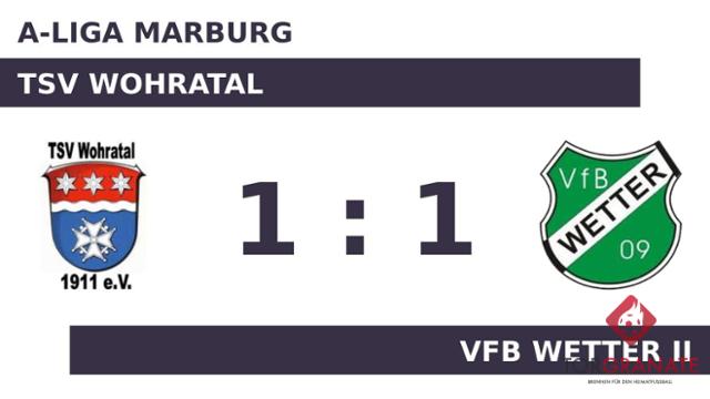 Vor dem Seitenwechsel sorgte Imprachim Chousein mit seinem Treffer für eine kalte Dusche für den VfB Wetter II. Ein Tor auf Seiten des TSV Wohratal machte zur Pause den Unterschied zwischen den beiden Mannschaften aus. Mit einem Wechsel – Nico Bubenheim kam für Jakob Dressler – startete der Gastgeber in Durchgang zwei. Nils Ruppel schoss für den VfB Wetter II in der 63. Minute das erste Tor. Beim Abpfiff durch den Schiedsrichter Joel Bornscheuer (Battenberg (Eder)) stand es zwischen dem TSV Wohratal und dem VfB Wetter II pari, sodass sich beide mit jeweils einem Punkt begnügen mussten.