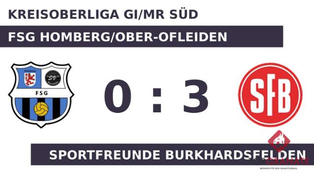 Die SF Burkhardsfelden ging per Elfmeter von Julian Horst in Führung (17.). Yannick Fina musste nach nur 18 Minuten vom Platz, für ihn spielte Pascal Rehnelt weiter. Mit der knappen Führung der Sportfreunde Burkhardsfelden pfiff der Schiedsrichter zur Halbzeit. Oliver Dzierzewski trug sich in der 60. Spielminute in die Torschützenliste ein. In der 80. Minute stellte die SF Burkhardsfelden personell um: Per Doppelwechsel kamen Patrick Komoss und Nicholas Lange auf den Platz und ersetzten Justin Raith und Thomas Rotärmel. In der 90. Minute verwandelte Marian Hild dann einen Elfmeter für den Gast zum 3:0. Ein starker Auftritt ermöglichte der Sportfreunde Burkhardsfelden am Sonntag einen ungefährdeten Erfolg gegen die FSG Homberg/Ober-Ofleiden.