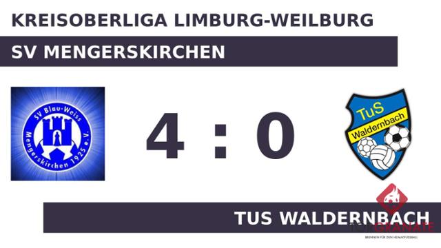 Maximilian Lotz brachte den SV Mengerskirchen in der 33. Spielminute in Führung. Zur Pause behielt die Heimmannschaft die Nase knapp vorn. Alexander Fröhlich schoss die Kugel zum 2:0 für den SV Mengerskirchen über die Linie (54.). Für das 3:0 des SV Mengerskirchen sorgte Jonathan Meuser, der in Minute 81 zur Stelle war. Santos Silva Maurizio Dos stellte schließlich in der 89. Minute den 4:0-Sieg für den SV Mengerskirchen sicher. Letztlich feierte der SV Mengerskirchen gegen den TuS Waldernbach nach einer überzeugenden Darbietung einen verdienten Heimsieg.
