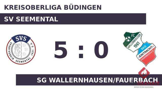 Linus Schleucher stellte die Weichen für den SV Seemental auf Sieg, als er in Minute 31 mit dem 1:0 zur Stelle war. Ein Tor auf Seiten der Heimmannschaft machte zur Pause den Unterschied zwischen den beiden Mannschaften aus. Wenig später kamen Jan Niklas Uecker und Kevin Maurice Grimmer per Doppelwechsel für Nils Rinker und Robin Lang auf Seiten der SG Wallernhausen/Fauerbach ins Match (55.). Erik Schmiedl ließ sich in der 56. Minute nicht zweimal bitten und verwertete zum 2:0 für den SV Seemental. Tobias Silberling verwandelte in der 65. Minute einen Elfmeter und baute den Vorsprung des SV Seemental auf 3:0 aus. In der 72. Minute legte Niklas Barwig zum 4:0 zugunsten des SV Seemental nach. Nico Lambmann gelang in den Schlussminuten noch ein weiterer Treffer für den SV Seemental (85.). Letztlich feierte der SV Seemental gegen die SG Wallernh./Fauerb. nach einer überzeugenden Darbietung einen verdienten 5:0-Heimsieg.