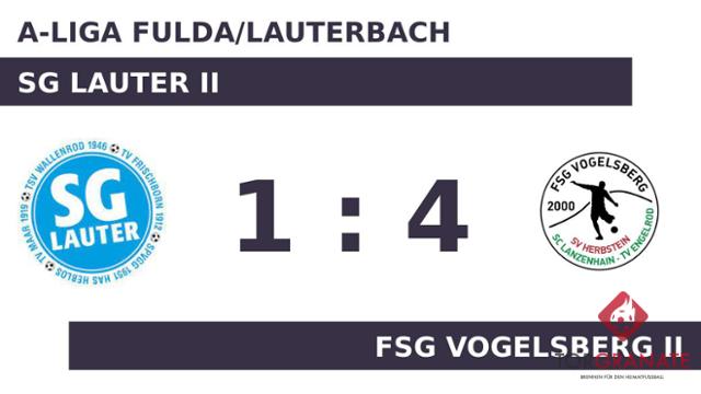 Bei der SG kam Marius Caspar für Lucas Müller ins Spiel und sollte fortan für neue Impulse sorgen (30.). Ehe der Schiedsrichter Frank Arnold (Künzell) die Protagonisten zur Pause bat, traf Nico Leister zum 1:0 zugunsten der FSG Vogelsberg II (41.). Kurz vor dem Seitenwechsel legte Chris Beulig das 2:0 nach (44.). Es waren die Gäste, die zur Pause eine Führung ihr Eigen nannten. Anstelle von Luis Enrique Bachmann war nach Wiederbeginn Andreas Kreutzer für die SG Lauter II im Spiel. Bei der Heimmannschaft änderte sich die Aufstellung für die zweite Halbzeit. Maximilian Boss ersetzte Christian Köhler. Johannes Dechert vollendete zum dritten Tagestreffer in der 51. Spielminute. Beulig legte in der 76. Minute zum 4:0 für die FSG Vogelsberg II nach. Vom Elfmeterpunkt erzielte Caspar den Ehrentreffer für die SG Lauter II (86.). Am Ende punktete die FSG Vogelsberg II dreifach bei der SG Lauter II.