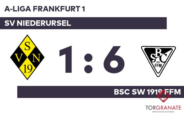 Maximilian Büge brachte den SV Niederursel per Doppelschlag ins Hintertreffen, als er in der 30. und 36. Minute vollstreckte. Es waren die Gäste, die zur Pause eine Führung ihr Eigen nannten. Mit dem 3:0 durch Fajes Fazel schien die Partie bereits in der 47. Minute mit dem BSC SW 1919 Ffm einen sicheren Sieger zu haben. Zdenko Simunkovic verkürzte für den SV Niederursel später in der 55. Minute auf 1:3. Mit weiteren Toren von Alessandro Cavalera (60.), Pietro Saraca (80.) und Fazel (89.) stellte der BSC SW 1919 Ffm den Stand von 6:1 her. Die Gäste überrannten den SV Niederursel förmlich mit sechs Toren und fahren so mit einem verdienten Sieg in der Tasche nach Hause.