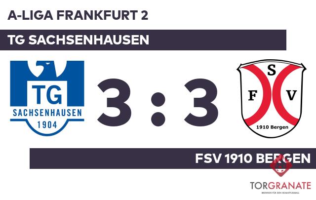 Zu Beginn der Begegnung neutralisierten sich beide Mannschaften so weit, dass sich keine von ihnen eine Torchance herausspielte. Moritz Antlitz brachte der TG Sachsenhausen nach 19 Minuten die 1:0-Führung. Nach nur 21 Minuten verließ Marko Krizanac vom FSV 1910 Bergen das Feld, Fawad Rahmani-Maywandi kam in die Partie. In der 35. Minute brachte Brian Frederik Brestel das Netz für die TG Sachsenhausen zum Zappeln. Die Hintermannschaft des FSV 1910 Bergen ließ bis zur Pause kein weiteres Tor zu und es ging bei unverändertem Stand in die Kabinen. Zum Seitenwechsel ersetzte Sharafudin Naser vom Gast seinen Teamkameraden Davor Polic. Die TG Sachsenhausen konnte mit dem ersten Durchgang sehr zufrieden sein. Trotzdem gab es Veränderungen bei der Heimmannschaft. Niklas Wölm ersetzte Brestel, der nun schon vorzeitig Feierabend machte. Das 1:2 des FSV 1910 Bergen bejubelte Josh Haas (48.). Robert Holtz schoss die Kugel zum 3:1 für die TG Sachsenhausen über die Linie (79.). Petar Maric schlug doppelt zu und glich damit für den FSV 1910 Bergen aus (84./90.). Am Ende stand es zwischen der TG Sachsenhausen und dem FSV 1910 Bergen pari.