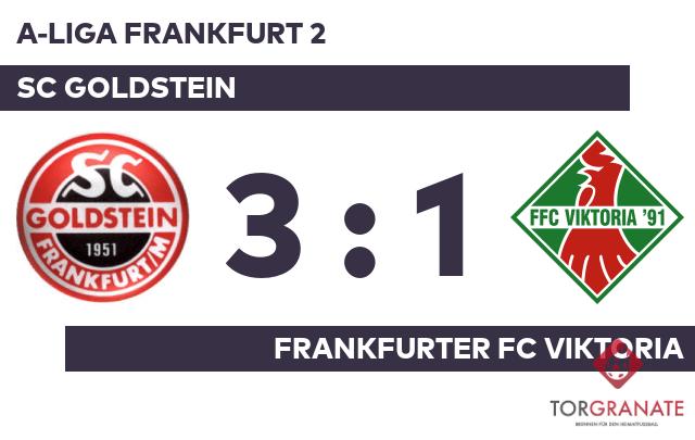 Für das 1:0 und 2:0 war Christoph Bierwirth verantwortlich. Der Akteur traf gleich zweimal ins Schwarze (12./42.). Mit der Führung für den SC Goldstein ging es in die Halbzeitpause. Ein Eigentor des Gastgebers in der 60. Minute brachte dem FFC Viktoria den 1:2-Anschluss. Eren Bas stellte wenige Minuten vor dem Schlusspfiff den Stand von 3:1 für den SC Goldstein her (88.). Nach abgeklärter Leistung blickte der SC Goldstein auf einen klaren Heimerfolg über den Frankfurter FC Viktoria.
