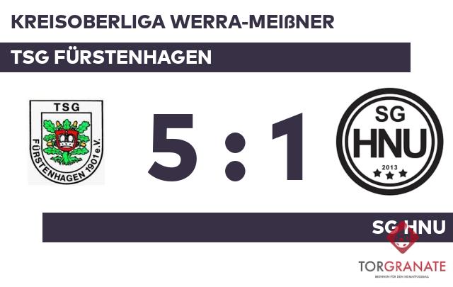 Sascha Biehl schoss in der fünften Minute vom Elfmeterpunkt das erste Tor des Spiels für die SG HNU. Nicolae Titan schoss für den TSG Fürstenhagen in der 18. Minute das erste Tor. Wenige Momente vor dem Seitenwechsel war Cristian Titan mit dem 2:1 für den Gastgeber zur Stelle (45.). Der TSG Fürstenhagen führte zur Halbzeit knapp mit einem Tor Vorsprung. Nicolae Titan schnürte mit seinem zweiten Treffer einen Doppelpack und brachte seine Mannschaft auf die Siegerstraße (57.). Andre Döberitz überwand den gegnerischen Schlussmann zum 4:1 für den TSG Fürstenhagen (71.). Cristian Titan besorgte in der Schlussphase schließlich den fünften Treffer für den TSG Fürstenhagen (74.). Letztlich feierte der TSG Fürstenhagen gegen die SG HNU nach einer überzeugenden Darbietung einen verdienten 5:1-Heimsieg.