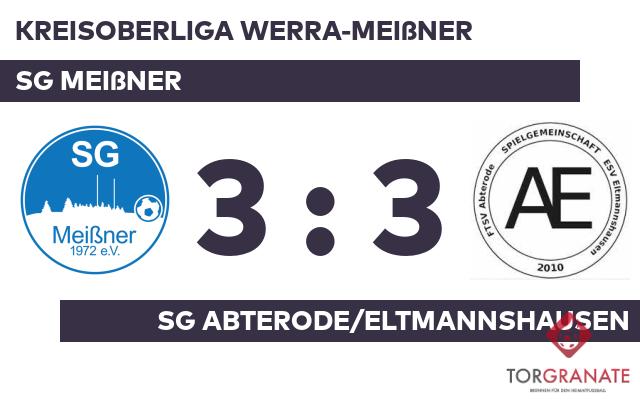 Die SG Meißner ging durch Tim Malzfeld in der 22. Minute in Führung. Philip Demus versenkte die Kugel zum 2:0 für die Gastgeber (36.) Jonas Eyrich nutzte die Chance für Abterode/Eltmannsh. und beförderte in der 38. Minute das Leder zum 1:2 ins Netz. Zur Pause war die SG Meißner im Fahrwasser und verbuchte eine knappe Führung. Per Elfmeter erhöhte Malzfeld in der 56. Minute seine Torausbeute an diesem Tag auf zwei Treffer – 3:1 für die SG Meißner. Philipp Schuelbe war es, der in der 85. Minute das Spielgerät im Tor der SG Meißner unterbrachte. Als einige Zuschauer bereits die SG Meißner als Sieger der Begegnung sahen, schlug der Moment von Eyrich, der zum Ausgleich traf (88.). Am Ende stand es zwischen der SG Meißner und der SG Abterode/Eltmannshausen pari.