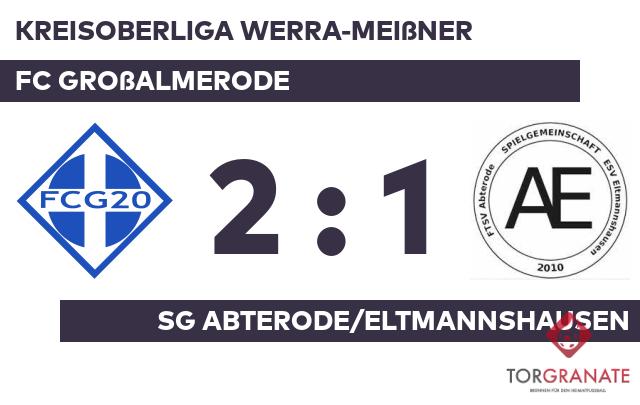 Jonas Eyrich traf zum 1:0 zugunsten von Abterode/Eltmannsh. (13.). Zum psychologisch wichtigen Zeitpunkt kurz vor der Halbzeit (44.) traf Patrick Krauss zum Ausgleich für den FC Großalmerode. Eine Aussage darüber, wer am Ende die Nase vorn haben würde, war nach dem Abpfiff der ersten Halbzeit noch nicht zu treffen. Es ging mit einem Gleichstand in die Kabinen. Jonas Müller verwandelte in der 57. Minute einen Elfmeter und brachte dem FC Großalmerode die 2:1-Führung. Mit dem Ende der Spielzeit strich der FC Großalmerode gegen die SG Abterode/Eltmannshausen die volle Ausbeute ein.