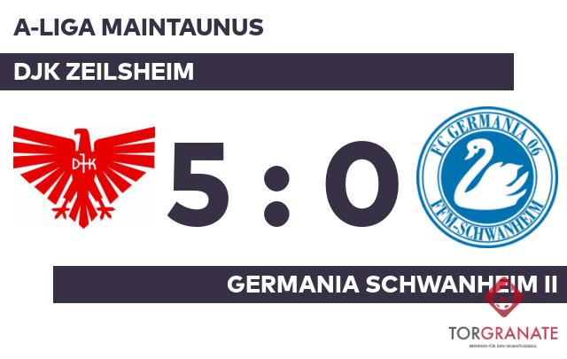 Die DJK Zeilsheim setzte sich mit diesem Sieg von der Germania Schwanheim II ab und belegt nun mit zwölf Punkten den elften Rang, während die Germ. Schwanheim II weiterhin sechs Zähler auf dem Konto hat und den 15. Tabellenplatz einnimmt.