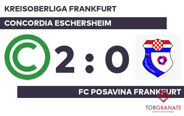 Leon Bohdal nutzte die Chance für den Gastgeber und beförderte in der 25. Minute das Leder zum 1:0 ins Netz. Nennenswerte Szenen blieben bis zum Seitenwechsel aus, sodass das Zwischenergebnis auch zu Beginn des zweiten Durchgangs Bestand hatte. Florian Ilcken schoss die Kugel zum 2:0 für das Concordia Eschersheim über die Linie (80.). Letzten Endes ging das Concord. Eschersheim im Duell mit dem FC Posavina als Sieger hervor.