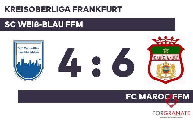 Der SC Weiß-Blau Ffm ging durch Naser Al Abdullah in der vierten Minute in Führung. Die Gastgeber mussten den Treffer von Hamza Chouiba zum 1:1 hinnehmen (16.). Valentin Vollmann traf zum 2:1 zugunsten des SC Weiß-Blau Ffm (18.). Tilman Garthe erhöhte für den SC Weiß-Blau Ffm auf 3:1 (26.). Nach nur 27 Minuten verließ Mounir Zaitouni vom FC Maroc Ffm das Feld, Omar Arrouj kam in die Partie. Jouness Fanach verkürzte für den FC Maroc Ffm später in der 39. Minute auf 2:3. Der SC Weiß-Blau Ffm führte zur Halbzeit knapp mit einem Tor Vorsprung. In der 48. Minute brachte Aziz Derrou den Ball im Netz des SC Weiß-Blau Ffm unter. Vollmann schoss für den SC Weiß-Blau Ffm in der 53. Minute das vierte Tor. Der FC Maroc Ffm fand zurück ins Spiel und das mit einem Paukenschlag. Derrou (60./70.) und Chouiba (65.) trafen und drehten die Partie auf 6:4. Es sprach beinahe alles dafür, dass er das Match gewinnen würde. Doch am Ende gab der SC Weiß-Blau Ffm die komfortable Führung aus den Händen und erlitt eine schmerzende Niederlage.