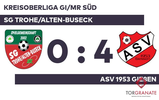 Wenige Momente vor dem Seitenwechsel war Damian Geissler mit dem 1:0 für die Gäste zur Stelle (42.). Der ASV 1953 Gießen führte zur Halbzeit knapp mit einem Tor Vorsprung. Die Trohe/Alten-Buseck kehrte stark verändert aus der Kabine zurück. Statt Steven Böttner, Iwan Martschenko und Jascha Magiera standen jetzt Benedikt Wagenlehner, Amirali Rezaei und Jan Patrick Kaus auf dem Platz. Michael Ray Bathomene glänzte an diesem Tag besonders. Er traf im Doppelpack für den ASV Gießen (59./84.). El Mehdi Zeghloul stellte wenige Minuten vor dem Schlusspfiff den Stand von 4:0 für den ASV 1953 Gießen her (87.). Schlussendlich reklamierte der ASV Gießen einen Sieg in der Fremde für sich und wies die SG Trohe/Alten-Buseck in die Schranken.