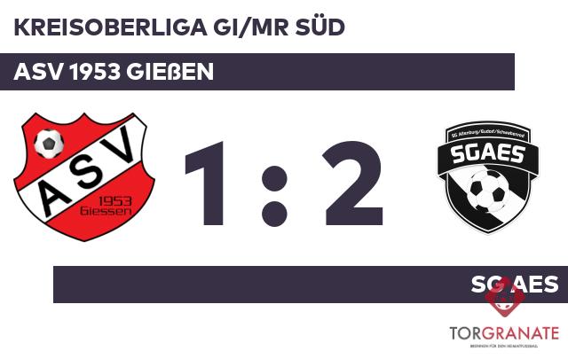 Torlos ging es nach dem Halbzeitpfiff in die Kabinen. Zum Seitenwechsel ersetzte Tim Wolf von der SG AES seinen Teamkameraden Julian Kraft. Nico Krausmüller, der von der Bank für Till Braun kam, sollte für neue Impulse beim Gast sorgen (48.). Für den Führungstreffer des ASV 1953 Gießen zeichnete Florian Gremm verantwortlich (58.). Das 1:1 der SG AES stellte Krausmüller sicher (67.). Dominik Becker brachte den Ball zum 2:1 zugunsten der SG AES über die Linie (75.). Die 1:2-Heimniederlage des ASV Gießen war Realität, als Schiedsrichter Thorsten Olschewski (Ebsdorfergrund) die Partie letztendlich abpfiff.