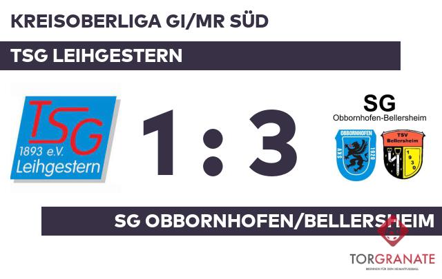 Zu Beginn der Begegnung neutralisierten sich beide Mannschaften so weit, dass sich keine von ihnen eine Torchance herausspielte. Das Obbornh./Bellersh. ging durch Loris Schmitt in der 18. Minute in Führung. Nach nur 30 Minuten verließ Marlon Trux von den Gästen das Feld, Maximilian Sommer kam in die Partie. Ohne weitere Tore ging es in die Pause. Patrick Werner versenkte die Kugel zum 2:0 für die SG Obbornhofen/Bellersheim (57.) Durch einen von Christoph Dietrich verwandelten Elfmeter gelang der TSG Leihgestern in der 63. Minute der 1:2-Anschlusstreffer. Mit dem 3:1 sicherte Schmitt dem Obbornh./Bellersh. nicht nur den Sieg, sondern erzielte auch seinen zweiten Tagestreffer (68.). Mit dem Schlusspfiff durch den Referee stand der Auswärtsdreier für die SG Obbornhofen/Bellersheim. Die TSG Leihgestern wurde mit 3:1 besiegt.