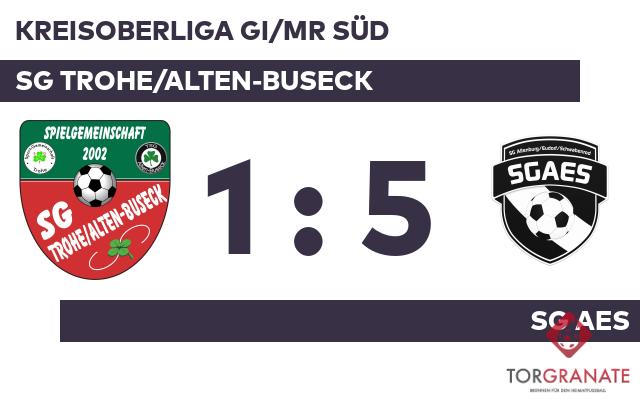 Mit einem schnellen Doppelpack (40./43.) zum 2:0 schockte Maximilian Bornmann die SG Trohe/Alten-Buseck. Ohne weitere Tore ging es in die Pause. Mit dem 3:0 durch Till Braun schien die Partie bereits in der 56. Minute mit der SG AES einen sicheren Sieger zu haben. In der 72. Minute stellte die Trohe/Alten-Buseck personell um: Per Doppelwechsel kamen Iwan Martschenko und Yunus Aytekin auf den Platz und ersetzten Kevin Weber und Luis Mickel. Bornmann vollendete zum vierten Tagestreffer in der 74. Spielminute. In der Schlussphase gelang Jascha Magiera noch der Ehrentreffer für die SG Trohe/Alten-Buseck (78.). Bornmann führte sein Team heute beinahe im Alleingang zum Erfolg: Mit dem 5:1 war er schon das vierte Mal an diesem Tag erfolgreich (81.). Ein starker Auftritt ermöglichte der SG AES am Sonntag einen ungefährdeten Erfolg gegen die Trohe/Alten-Buseck.