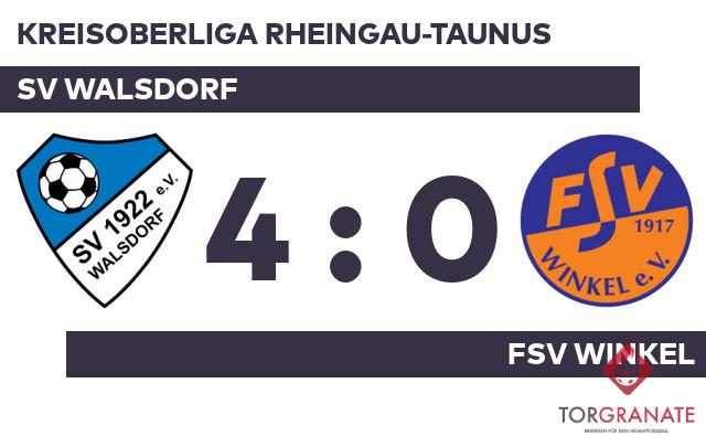 Der Unparteiische setzte mit dem Halbzeitpfiff dem torlosen Treiben auf dem Feld vorläufig ein Ende. Beim FSV Winkel kam zu Beginn der zweiten Hälfte Daniel Sternberg für Yannik Palinkas in die Partie. Für den Führungstreffer des SV Walsdorf zeichnete Niklas Ernstberger verantwortlich (56.). In der 59. Minute erhöhte Markus Zapp auf 2:0 für das Heimteam. In der 62. Minute legte Paul Neumann zum 3:0 zugunsten des SV Walsdorf nach. In der 65. Minute verwandelte Messi Azar einen Elfmeter zum 4:0 für den SV Walsdorf. Letztlich kam der SV Walsdorf gegen den FSV Winkel zu einem verdienten 4:0-Sieg.