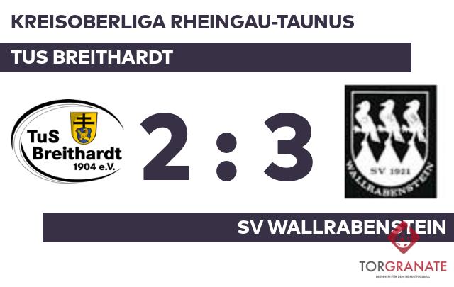 Jan Flemming traf früh und machte mit seinem Doppelpack den Traumstart der Wallrabensteiner perfekt (2./6.). Das letzte Tor der turbulenten Startphase markierte Paul Presber in der siebten Minute. Zum Abpfiff der ersten Halbzeit hatte der SV Wallrabenstein einen knappen Vorsprung herausgespielt. Jannik Ott ließ sich in der 51. Minute nicht zweimal bitten und verwertete zum 2:2 für den TuS Breithardt. Der Treffer zum 3:2 sicherte dem Wallrabenstein nicht nur die Führung – es war auch bereits der dritte von Flemming in diesem Spiel (81.). Mit dem Schlusspfiff durch den Referee stand der Auswärtsdreier für den SVW. Man hatte sich gegen den TuS Breithardt durchgesetzt.